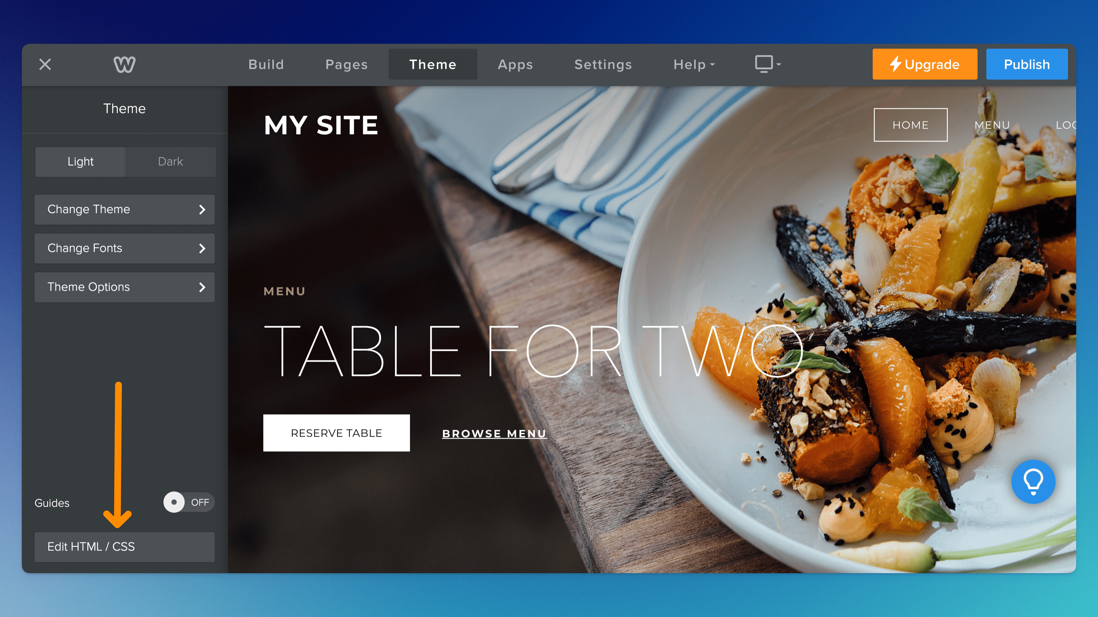 Once the editor is open, click on the Theme tab. In the bottom-left corner, click on the Edit HTML/CSS button.