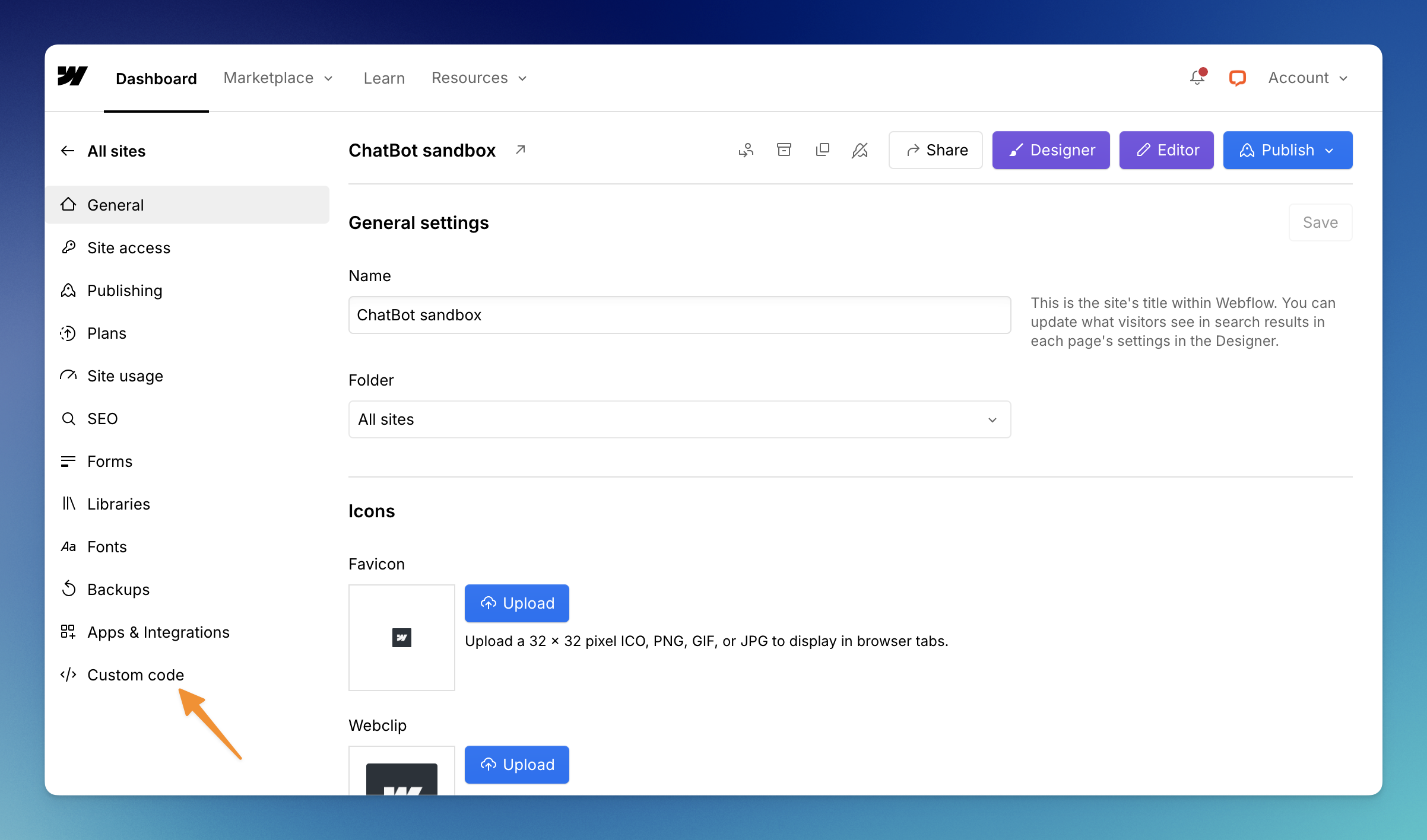 How to embed the ChatBot chat widget on a Webflow site Link icon