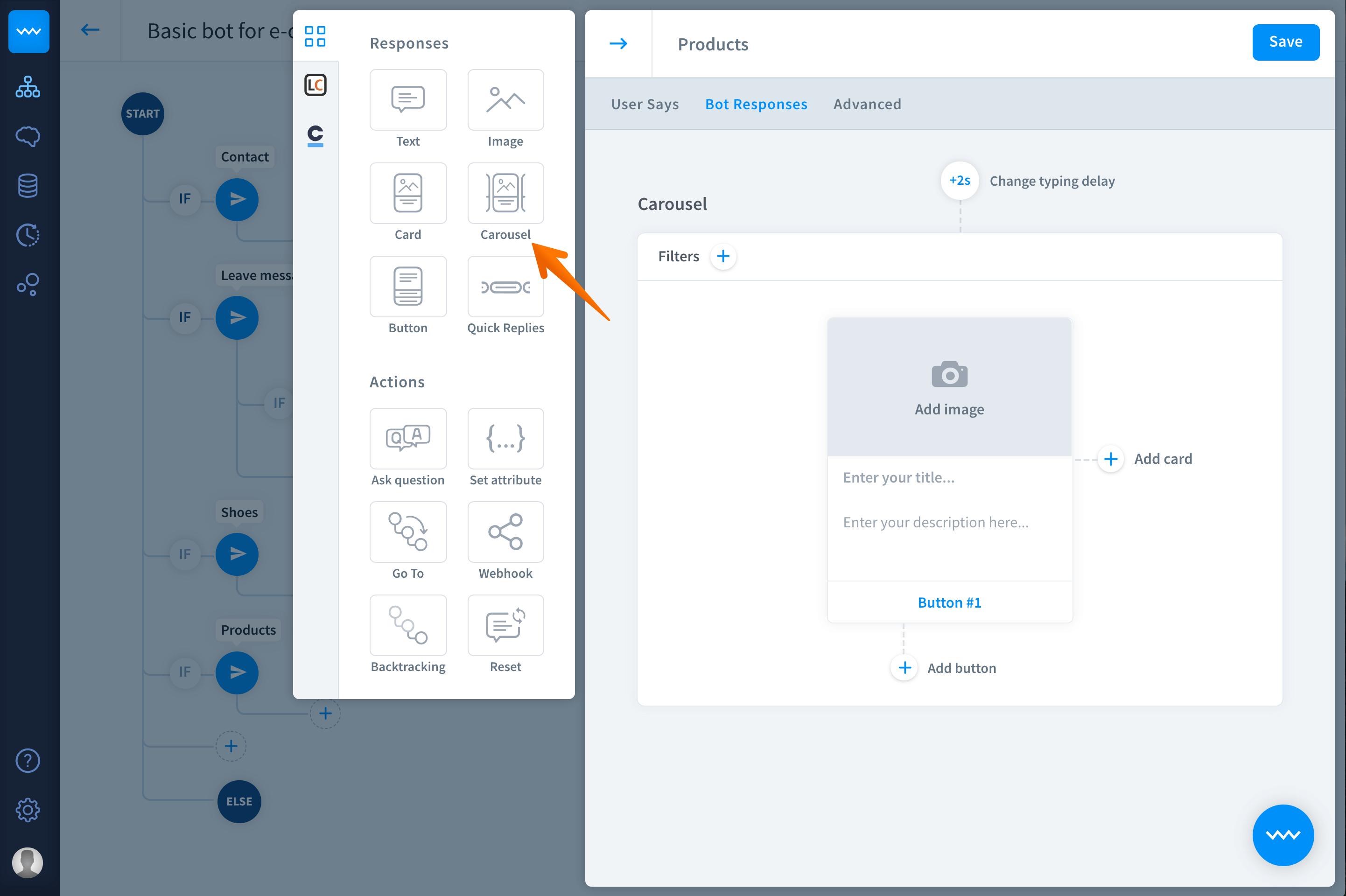Select carousel from available bot responses and actions.