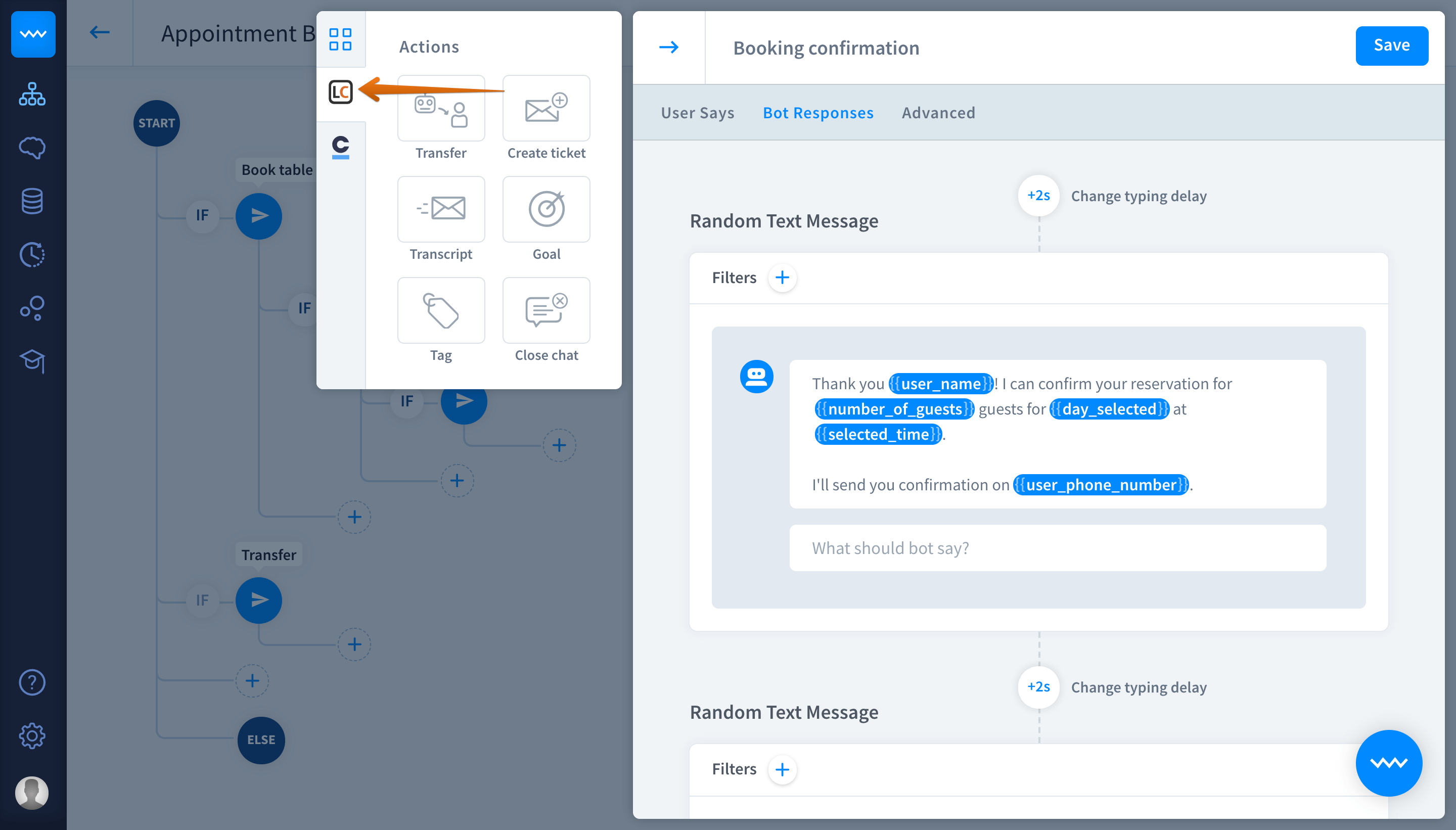 This bot response is designed only for LiveChat. Remember that you need an active LiveChat integration to use this bot action.