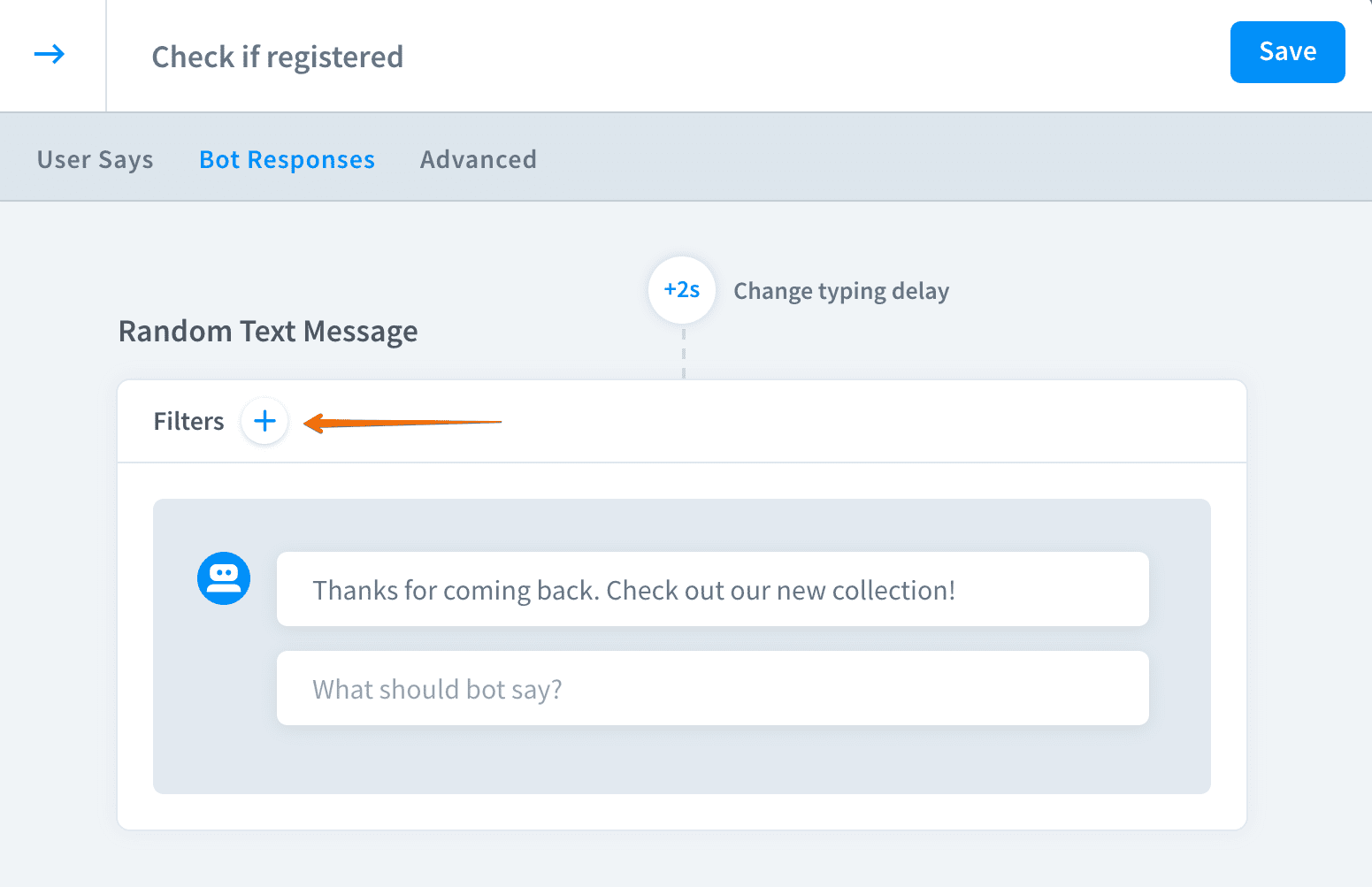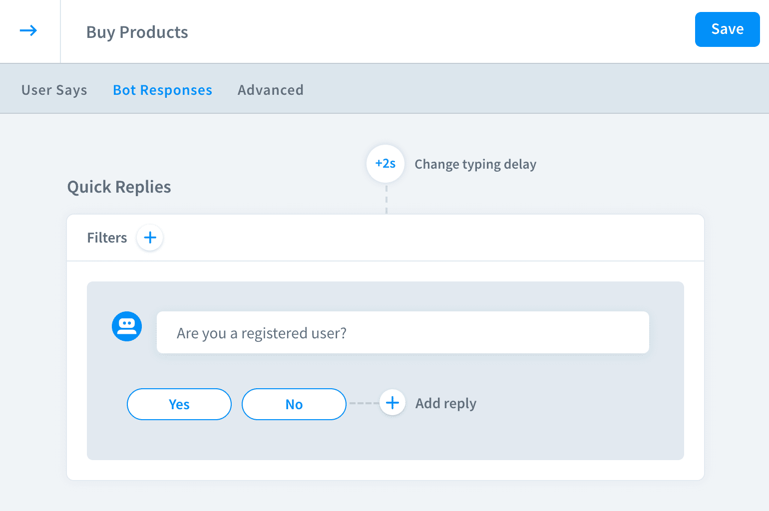 Filters allow you to decide when and if the bot responses and actions are shown to the users.