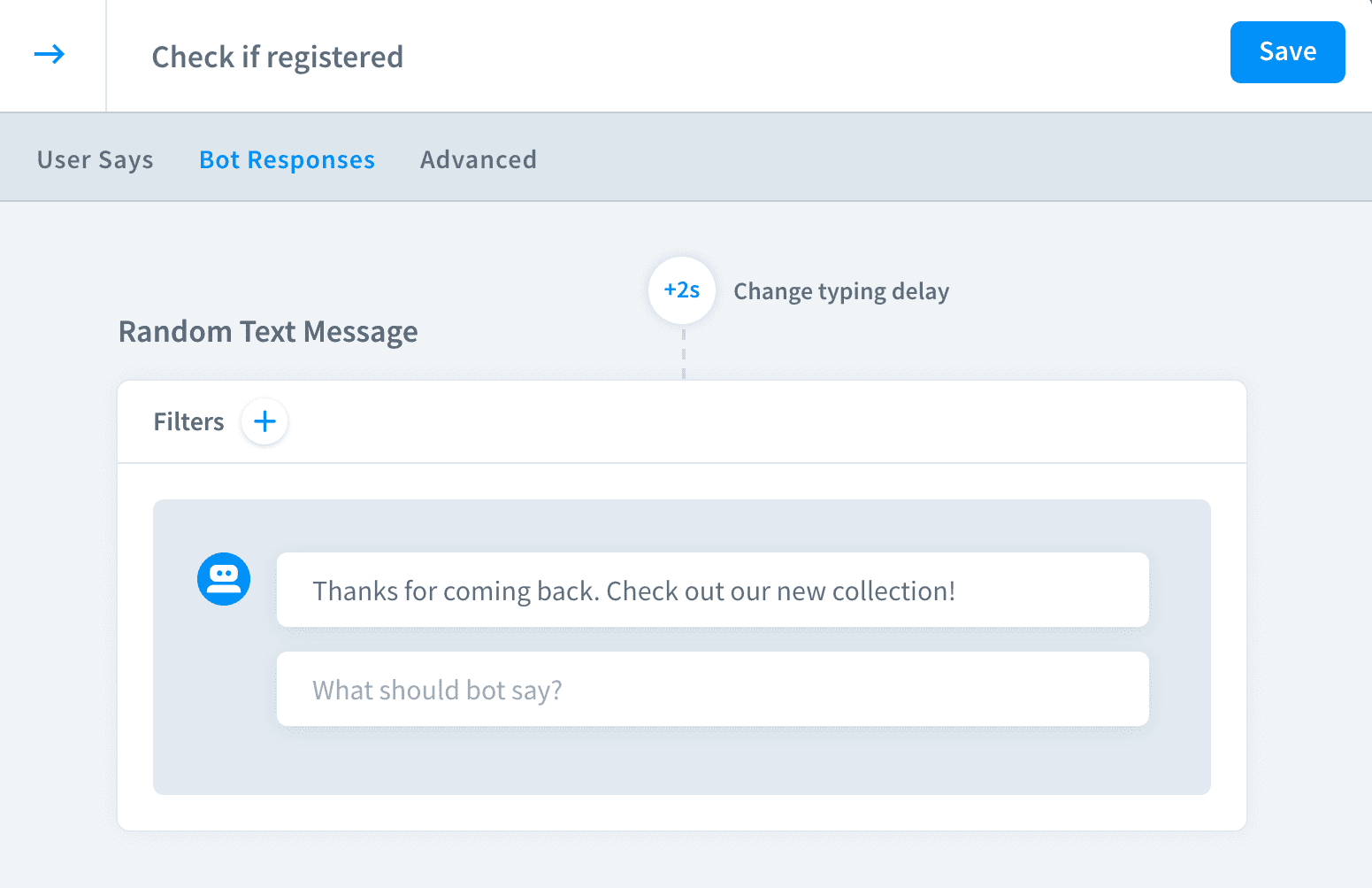 Chatbots aren’t any worse. We can program our digital assistants to reply according to the context of the conversation and the information about the user. For example, we can ask if a visitor is vegetarian and show the menu according to the reply using Filters.