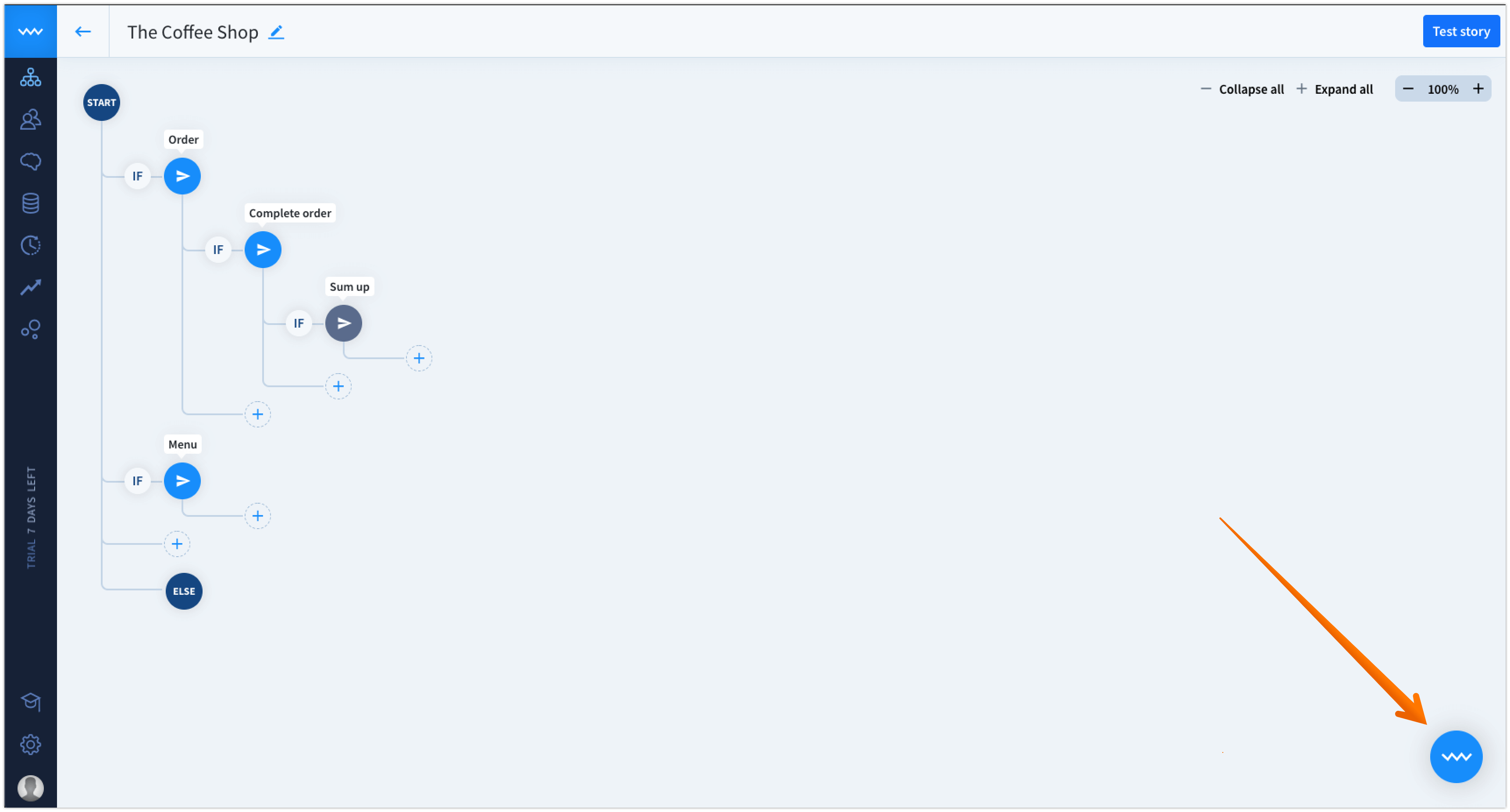 Whether you’re in the middle of building your chatbot or almost finished it, you can use the built-in chat to test out the conversation flow.