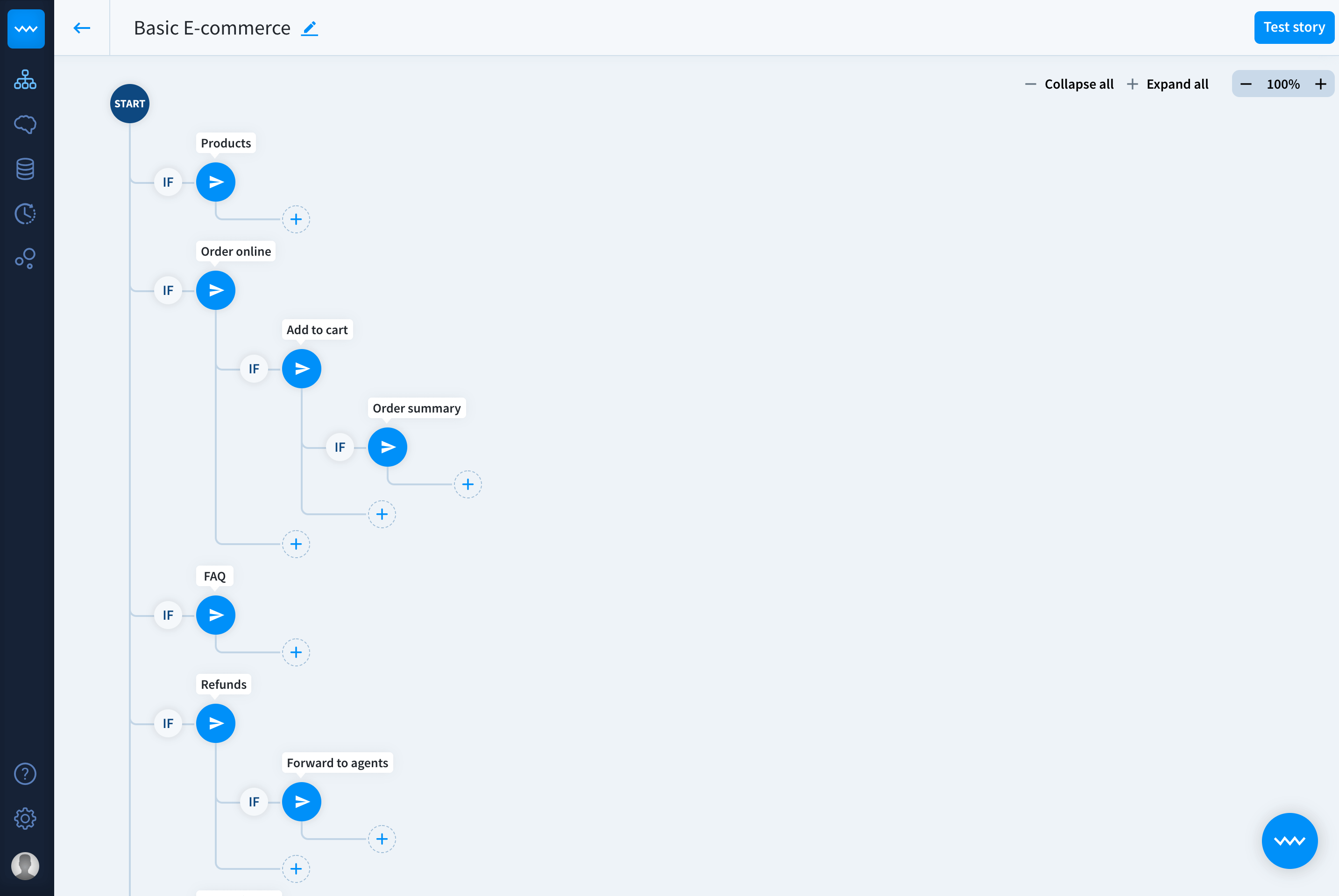 You can check your bot’s behavior at every step of the designing process. The easiest way to do it is to use the built-in chat. Type various queries to the chat window to check if the conversation is smooth and complete. Find more about using built-in chat here.
