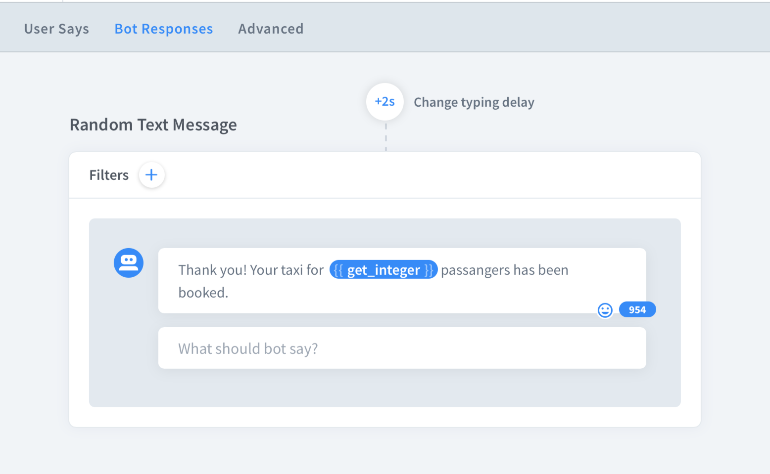 bot responsesand call the attributes using double curly brackets. Select theget_integerattribute you created.