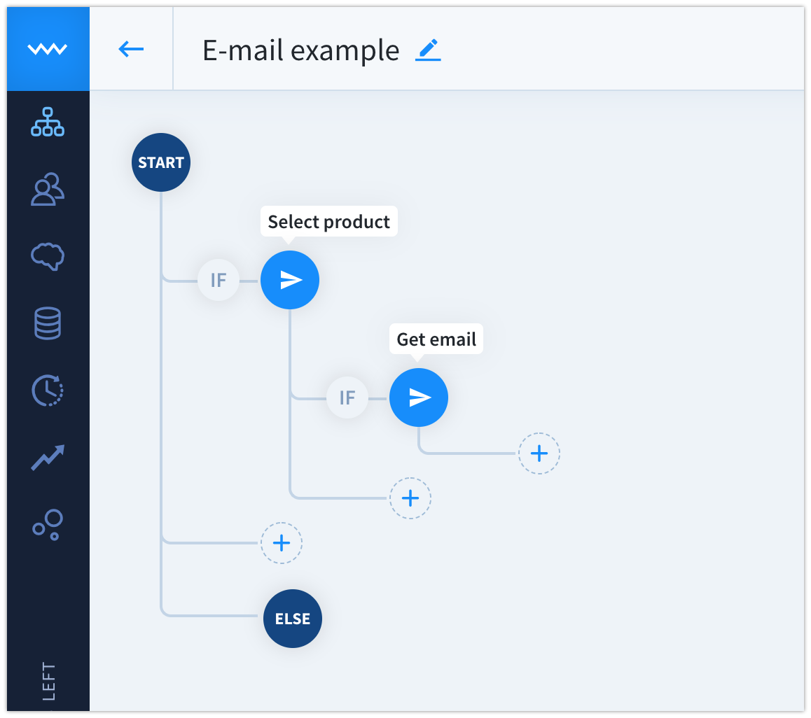 Sys.email exampleto easily identify it on my dashboard. Add two interactions:Select productandGet email.