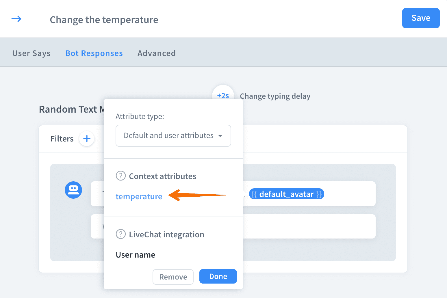 2. Now, go to the bot responses and confirm the change. Additionally, you can use the attribute temperature in the bot’s reply and assure the user that the value has been understood correctly.