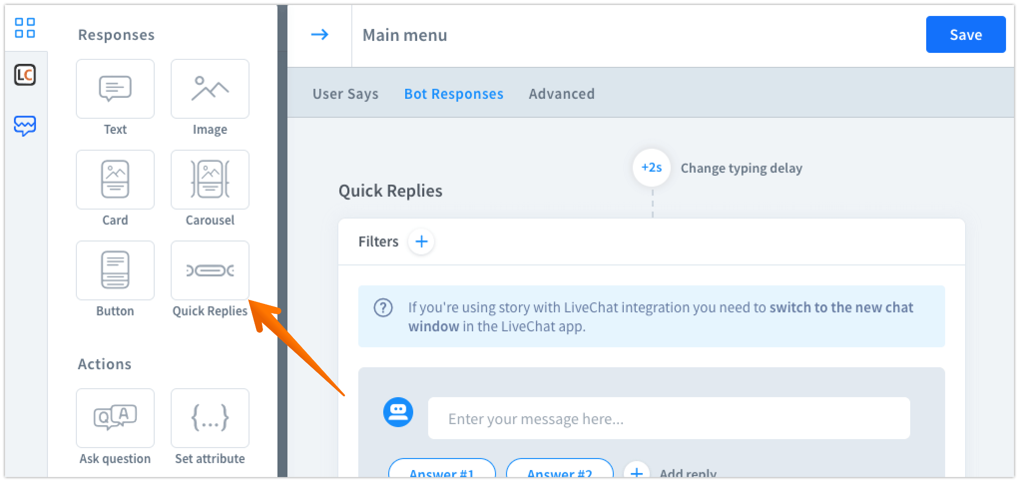 Confirmation. Its goal is to make sure that our visitor received all expected help before ending the chat. Add the text bot response to ask the question. You can also use quick replies or other suitable response.