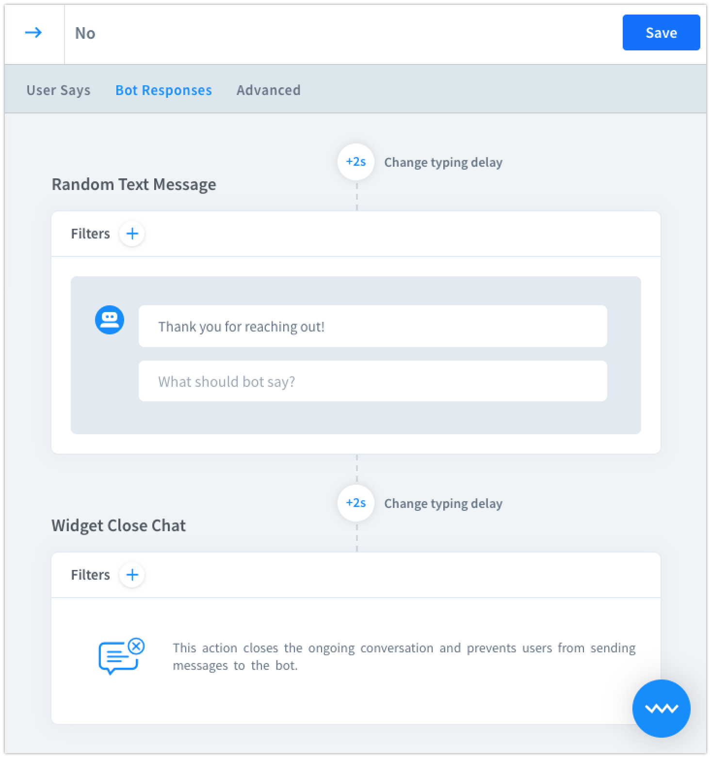 Noanswer means that the user wants to end the chat. We’ll use the reset bot response.