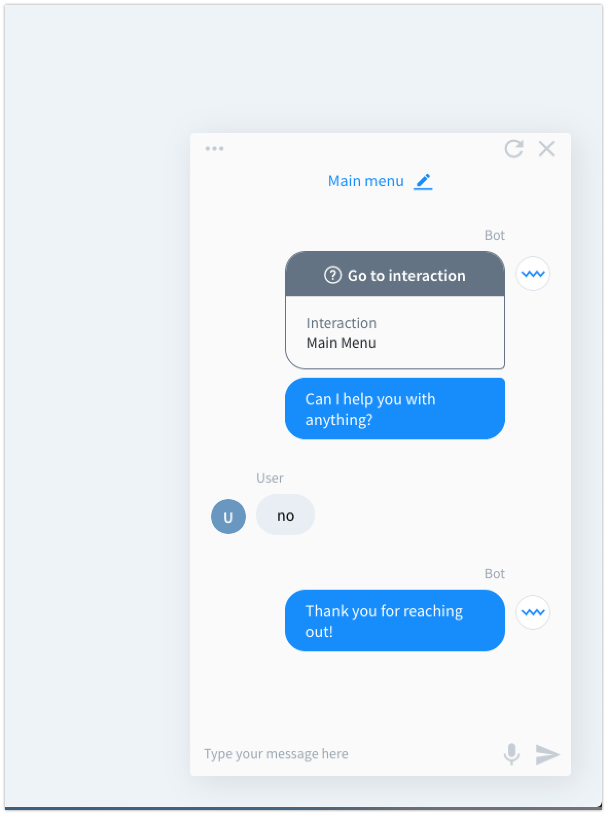 Yesinteraction should redirect to our bot’s main menu or any other appropriate part of the story. -