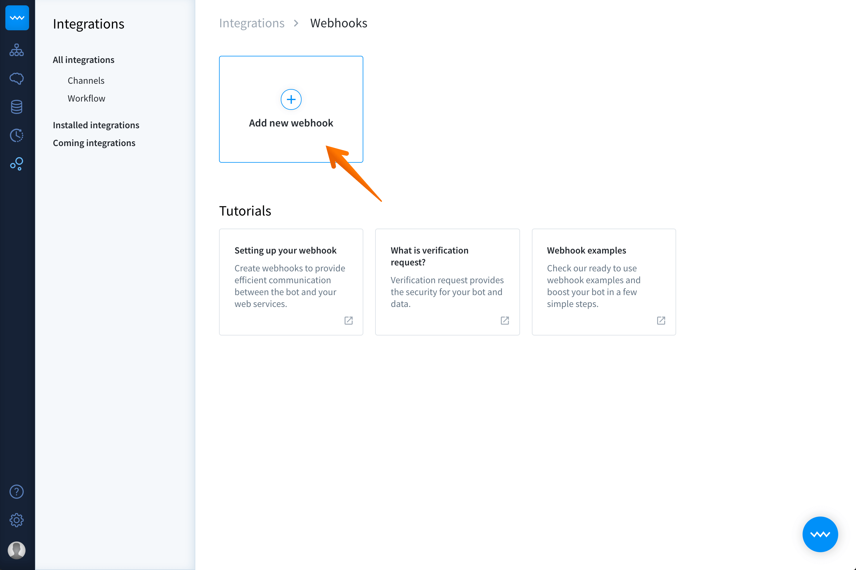 Create webhooks to provide efficient communication between the bot and your web services.