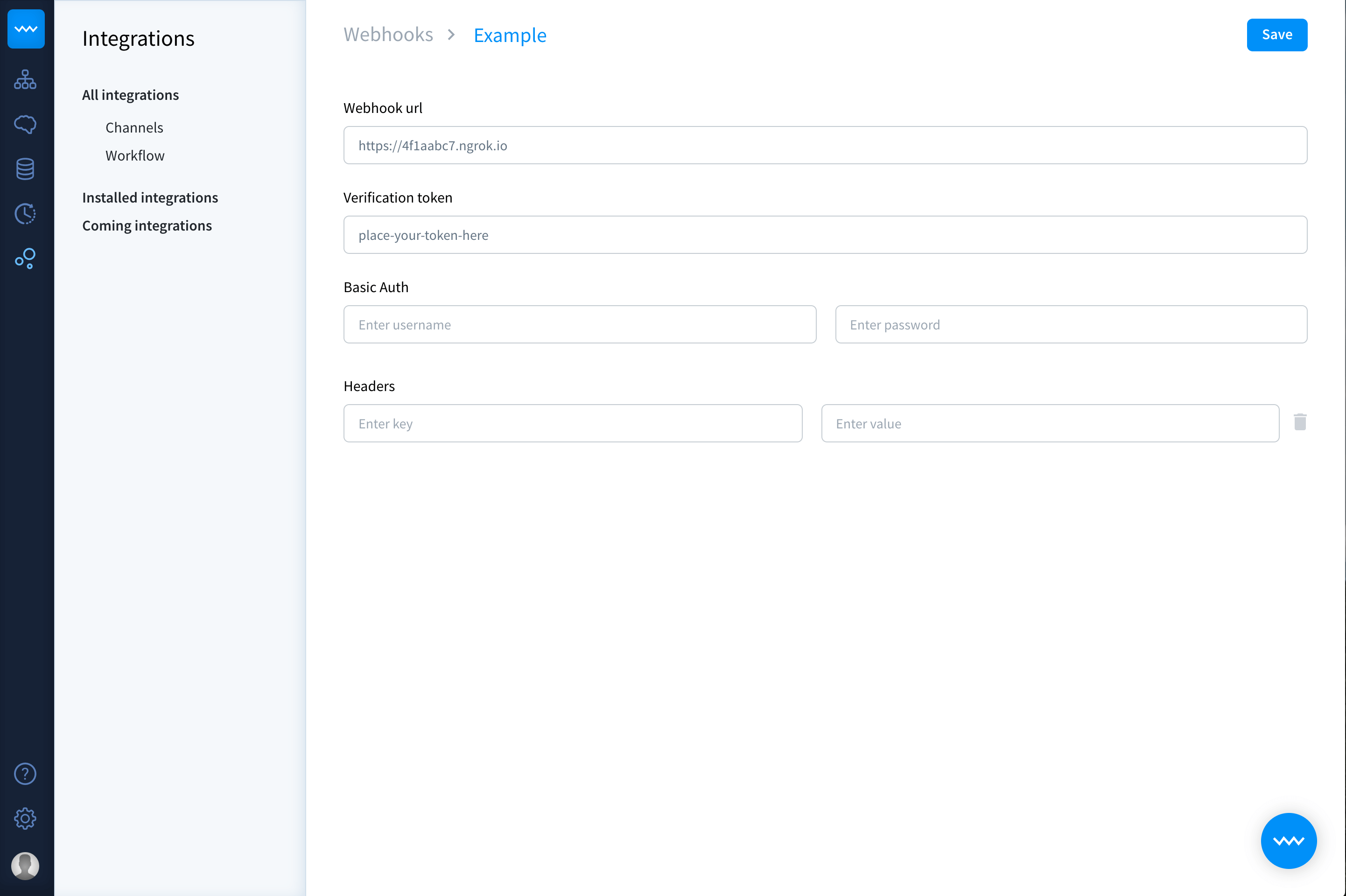 Now you’re in the webhook view. Give your webhook a name, to quickly identify it and paste its URL. In this example: