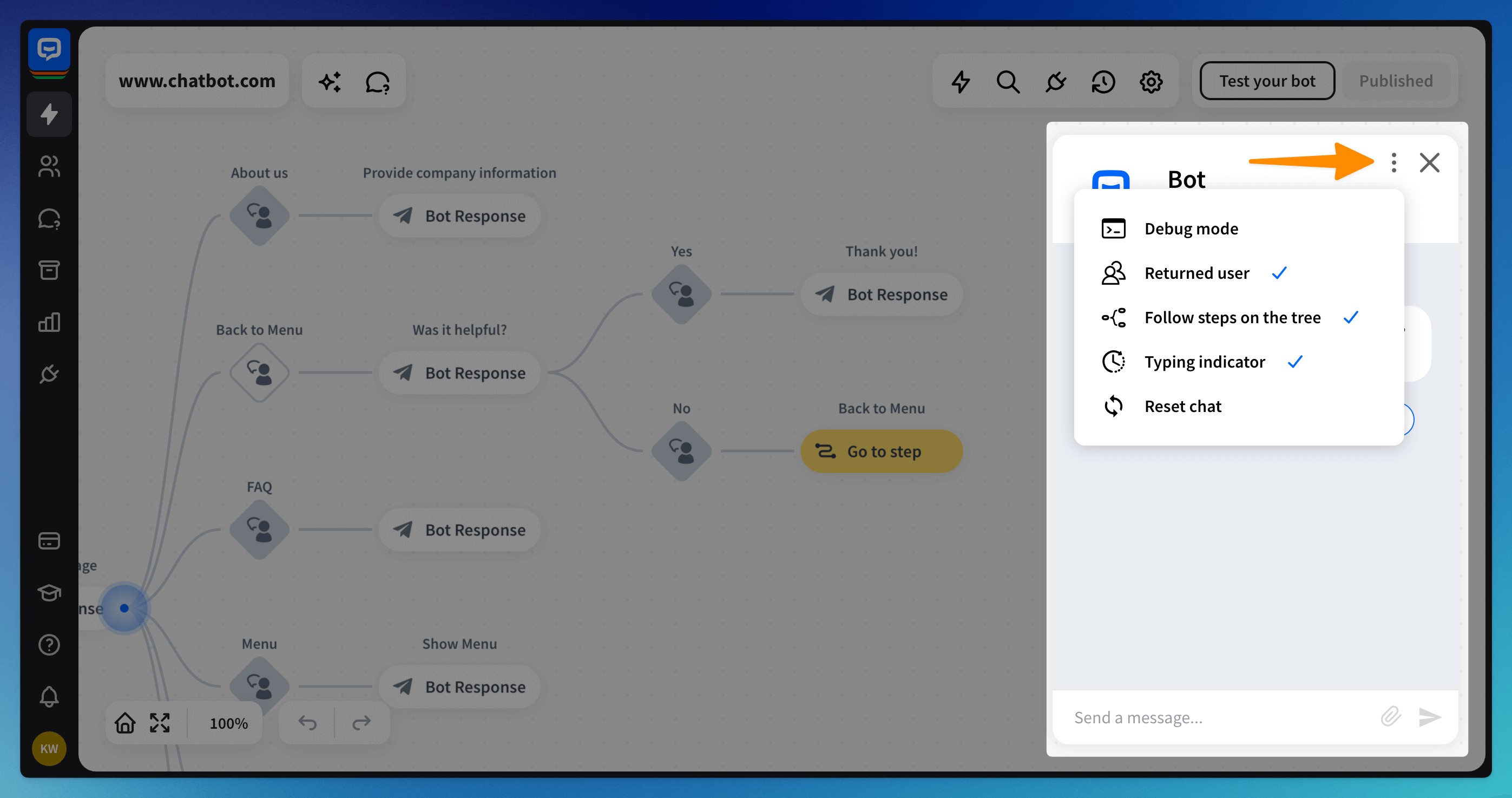 Debug Mode - see all the actions and interactions triggered during the chat, not only messages sent.