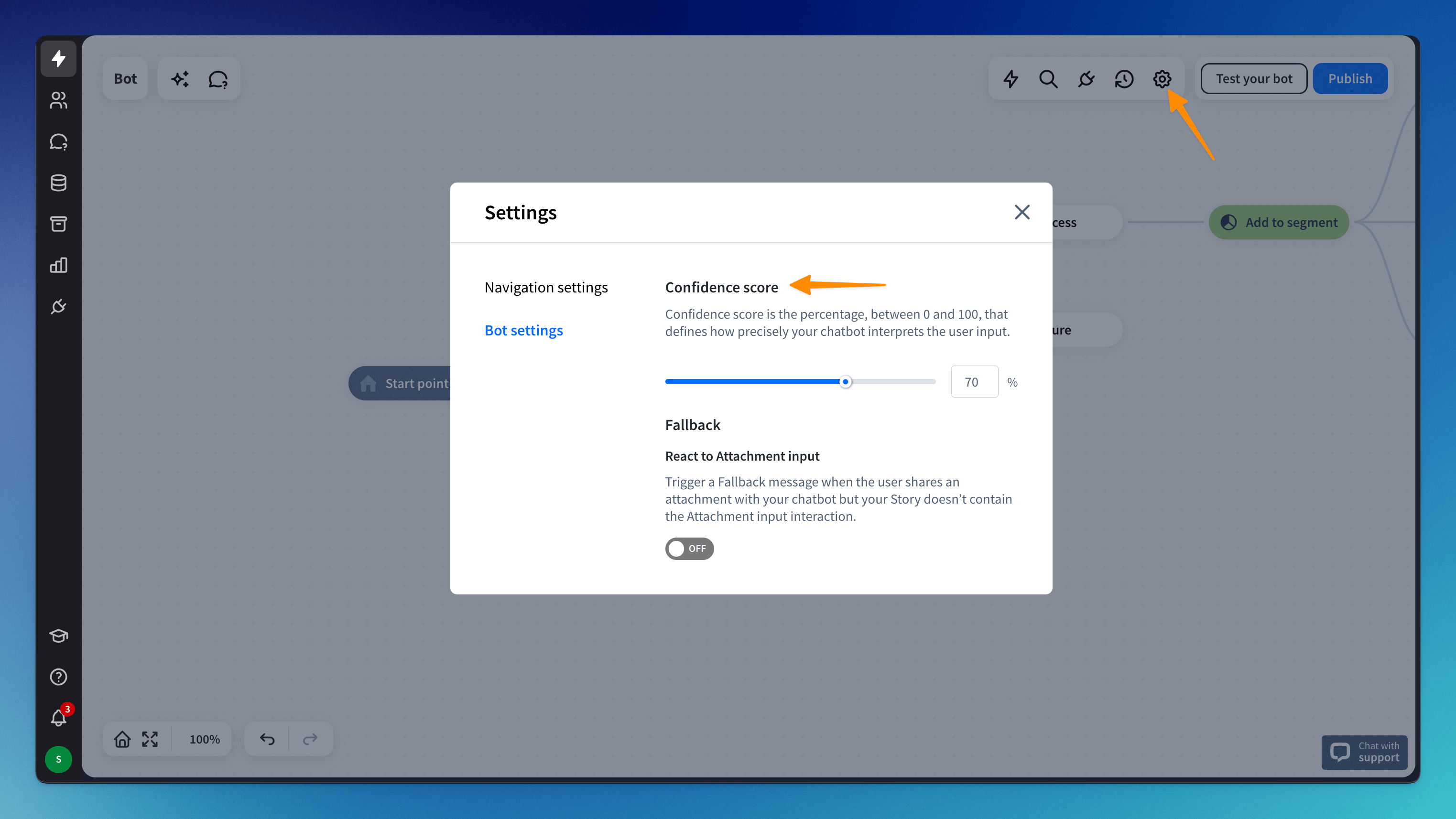 You can provide an effortless and smooth chatting experience by setting the confidence score correctly. The confidence score lets you decide precisely how your bot should interpret the user’s words.