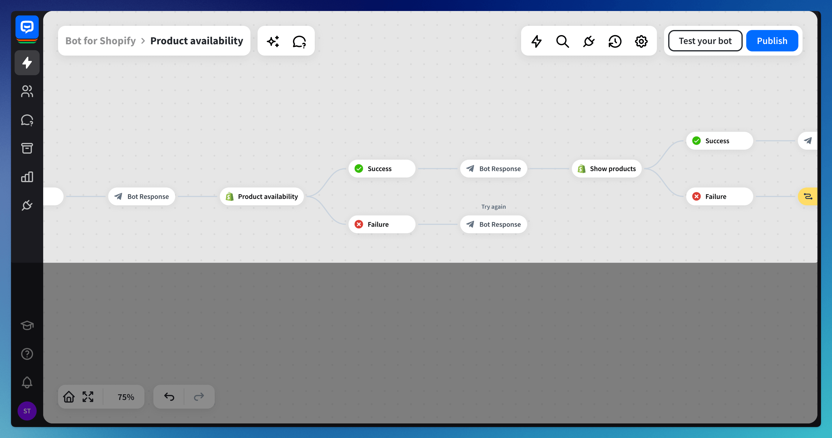 Shopify flows are pre-configured, task-specific chatbot structures that you can add to your bot to speed up the build process.