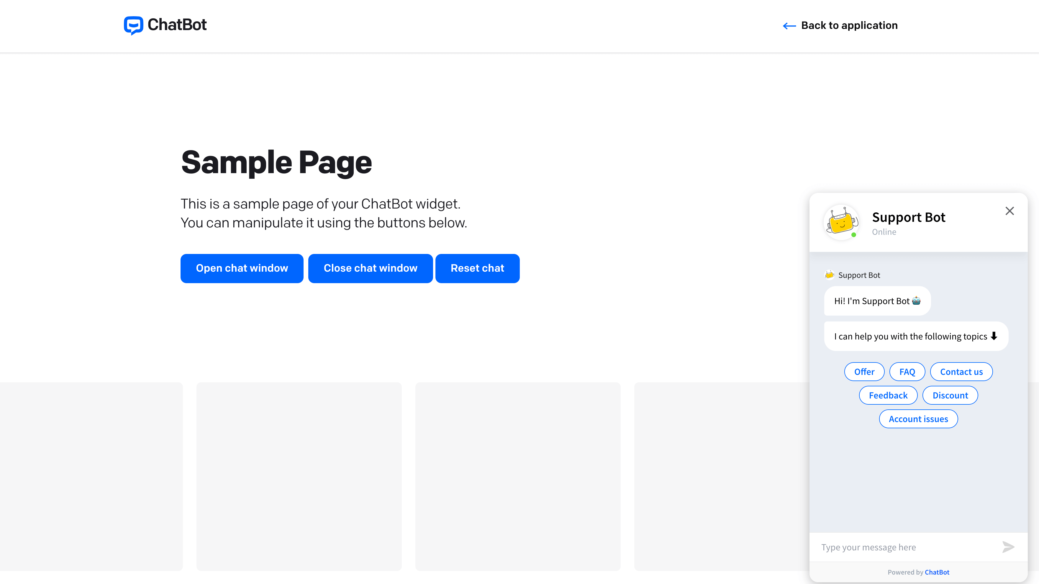ChatBot lets you verify your settings and test your chatbot on the sample page — a default demo page. To open the sample page, click on the Live Preview option in the Chat Widget settings.
