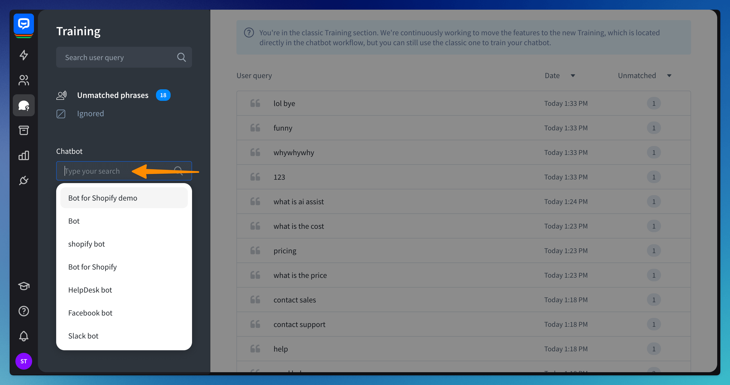 Chatbot – focused on one bot only? Don’t waste your time and review unmatched phrases only from one selected bot flow.