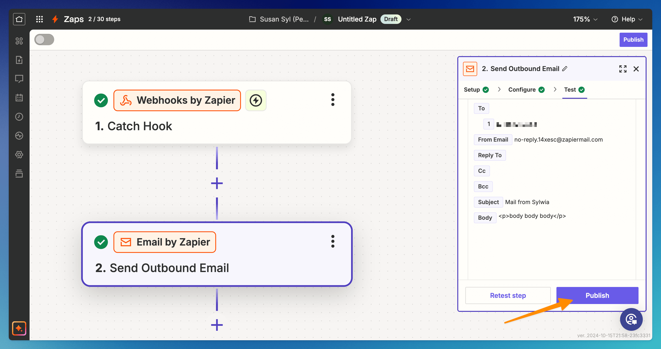 See the attributes chosen in the previous step. Test the integration. The test succeeded when you can see the body of the action.