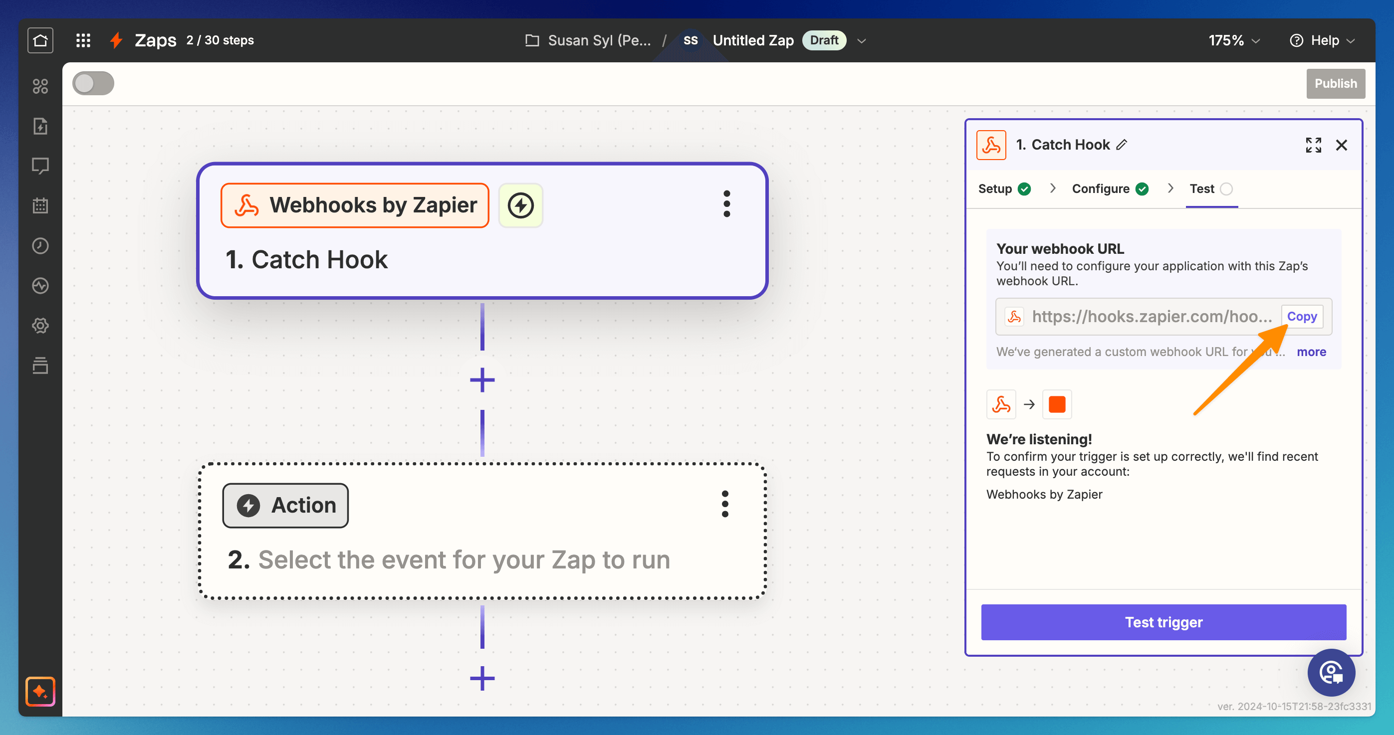 Copy the webhook URL generated by Zapier. We will paste it to the ChatBot webhook in the next steps.