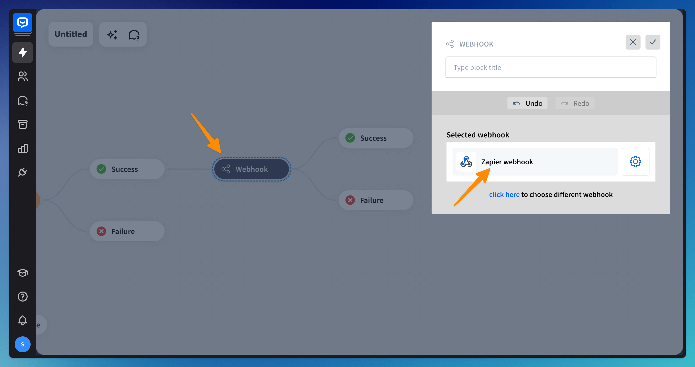 Drag the Webhook block to the bot flow and choose the webhook from the list.