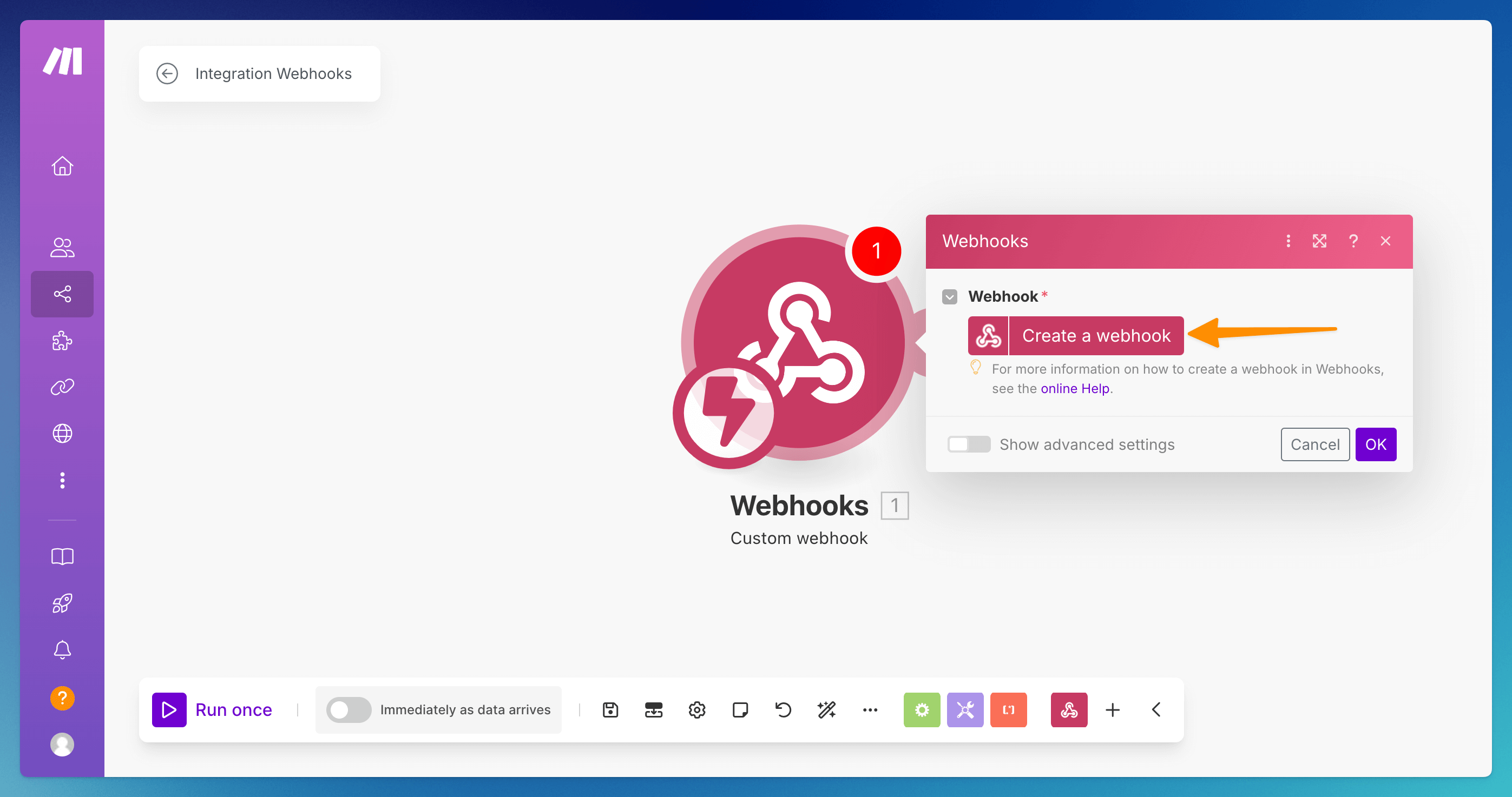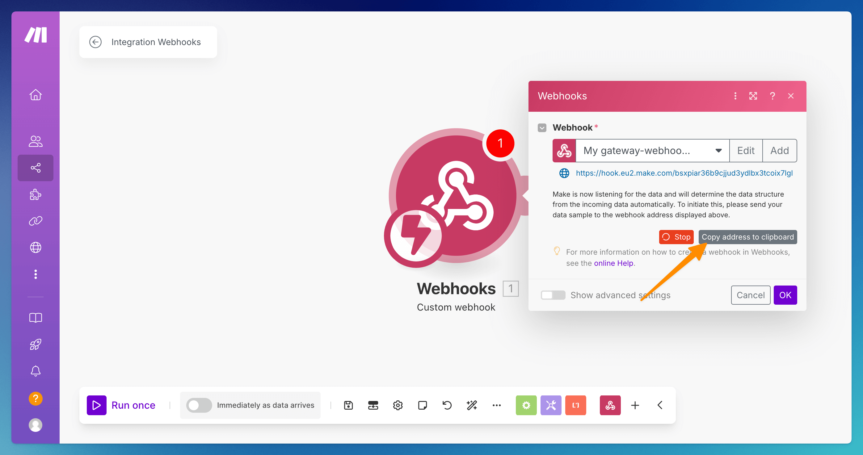 However, the destination app is sometimes unavailable in the Make Marketplace, or you want to include more information than the native integration provides. In that case, you can use no-code webhooks to make it work.