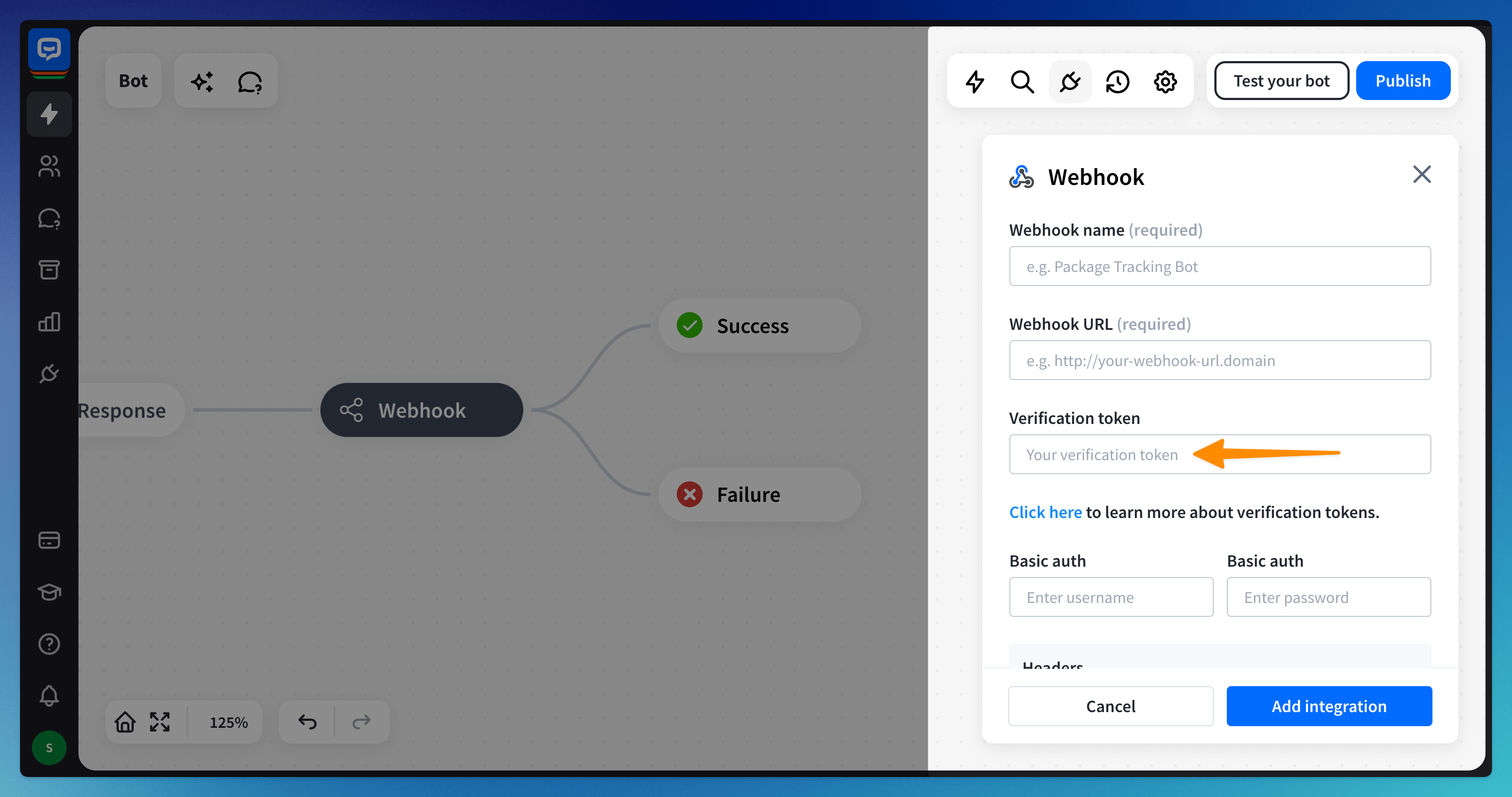 });Once the verification request is handled, you can add your webhook to ChatBot. If you want to learn more about setting up your first webhook, check out this article.